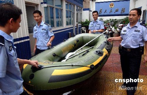 7月28日,福州一社區(qū)派出所警員調(diào)來沖鋒舟以應(yīng)對(duì)強(qiáng)臺(tái)風(fēng)“鳳凰”可能對(duì)市區(qū)造成的侵襲。中新社發(fā) 劉可耕 攝