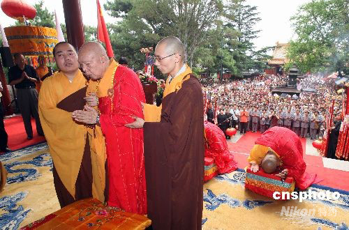 中國佛教協(xié)會會長一誠大和尚祈福誦經。中新社發(fā) 張宇 攝