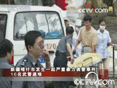 據(jù)中央電視臺(tái)報(bào)道,8月4日上午8時(shí)許,新疆喀什市邊防支隊(duì)集體出早操行至一賓館時(shí),突遭2名作案分子駕車襲擊,并引發(fā)車上的爆炸物,當(dāng)場造成16人死亡,16人受傷,2名作案人員已經(jīng)被抓獲,案件正在進(jìn)一步審理中。