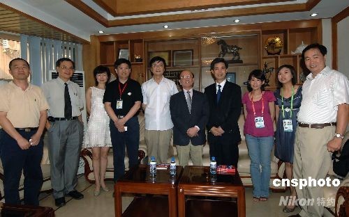 臺(tái)灣“中央社”董事長黃肇松(左六)、大陸部主任李培雄(左二)一行8月9日訪問中國新聞社,與中新社社長郭招金(右四)、總編輯劉北憲(左五)、副總編章新新(左四)、副總編夏春平(左一)、副總編王瑤(左三)、港臺(tái)部主任耿軍(右一)等合影。中新社發(fā) 鄒憲 攝