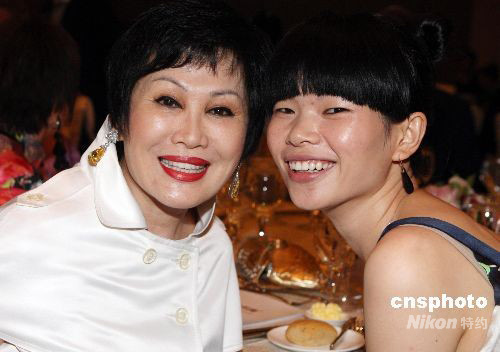 圖為美籍華人靳羽西與中國模特呂燕亮相北京突尼斯旅游文化周。 中新社發(fā) 錢興強 攝