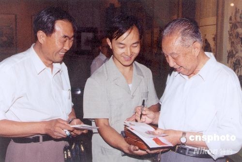 曾擔(dān)任中國共產(chǎn)黨和國家重要領(lǐng)導(dǎo)職務(wù)的華國鋒,因病醫(yī)治無效,于2008年8月20日12時50分在北京逝世,享年87歲。資料圖為1995年8月3日,華國鋒在抗日戰(zhàn)爭勝利五十周年美術(shù)作品展上為觀眾簽名。中新社發(fā) 毛建軍 攝