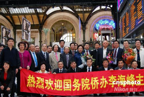 中國(guó)國(guó)務(wù)院僑辦主任李海峰在結(jié)束了法國(guó)馬賽的訪問行程后,十五日下午抵達(dá)法國(guó)首都巴黎,受到法華各界盛情歡迎。圖為法國(guó)數(shù)十個(gè)僑團(tuán)負(fù)責(zé)人和代表在巴黎里昂火車站迎接李海峰主任一行。中新社發(fā) 吳衛(wèi)中 攝
