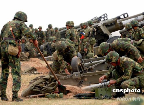 9月16日,中國人民解放軍參加“礪兵--2008”演習(xí)部隊進(jìn)行實兵對抗訓(xùn)練。訓(xùn)練依山地復(fù)雜地形進(jìn)行機(jī)械化立體進(jìn)攻、防守,突出機(jī)械化、信息化、立體化現(xiàn)代作戰(zhàn)特點(diǎn)。中新社發(fā) 宋吉河 攝