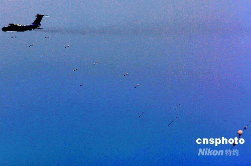 圖為解放軍空投兵力。中新社發(fā) 宋吉河 攝