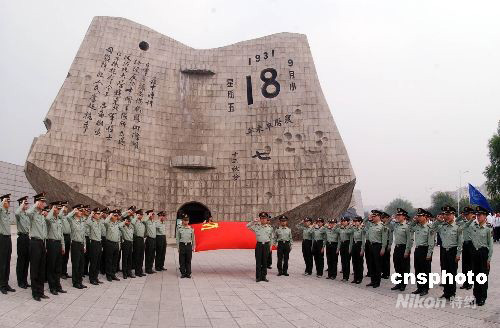 沈陽軍區(qū)某部官兵在“九·一八”歷史博物館莊嚴宣誓。中新社發(fā) 羅瀾 攝