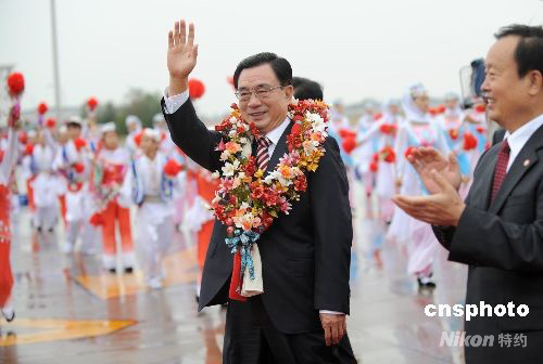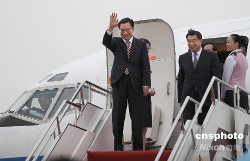9月22日上午,以中共中央政治局常委、中央紀(jì)委書記賀國強(qiáng)為團(tuán)長的中央代表團(tuán),乘專機(jī)抵達(dá)銀川,參加寧夏回族自治區(qū)成立50周年慶祝活動。在銀川河?xùn)|機(jī)場,受到寧夏回族自治區(qū)官員和民眾的熱烈歡迎。中新社發(fā) 廖攀 攝