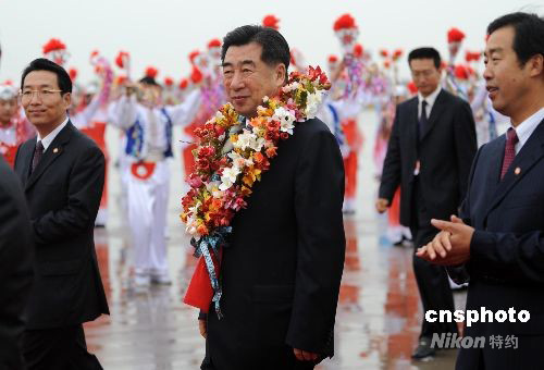 圖為中共中央政治局委員、國務(wù)院副總理回良玉戴上寧夏民眾獻上的花環(huán)。中新社發(fā) 廖攀 攝