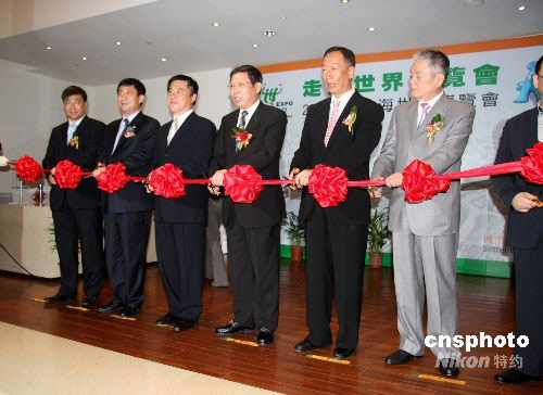9月22日,“2010上海世界博覽會推介會”暨“走進世界博覽會”展覽活動在臺北舉行。臺北市市長郝龍斌(左三)、上海常務(wù)副市長楊雄(左四)、臺灣鴻海集團董事長郭臺銘(左五)等出席開幕式并剪彩。中新社發(fā) 陳立宇 攝