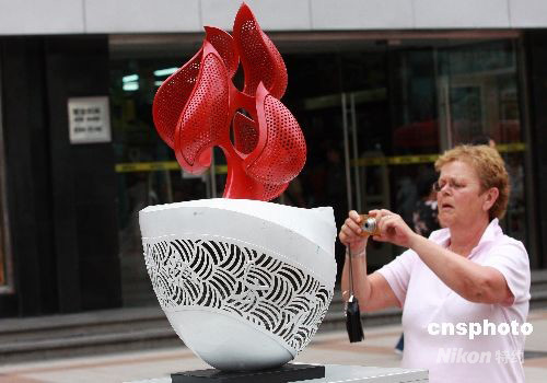 圖:奧林匹克藝術(shù)品《圣火之夢(mèng)》吸引外國(guó)游客
