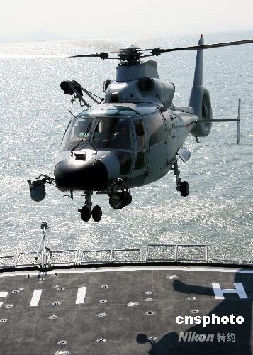 9月下旬,海軍某艦載機(jī)部隊載直升機(jī)進(jìn)行著艦訓(xùn)練。奧運安保任務(wù)結(jié)束后,該部隊便厲兵秣馬,轉(zhuǎn)變工作思路,突出訓(xùn)練重點。連日來,該部在各種近似實戰(zhàn)的對抗演練中,加強了艦機(jī)協(xié)同、聯(lián)合反潛、海上著艦等高難度課目的訓(xùn)練力度,磨礪了部隊復(fù)雜條件下遂行任務(wù)的能力。中新社發(fā) 鄢潤波 攝