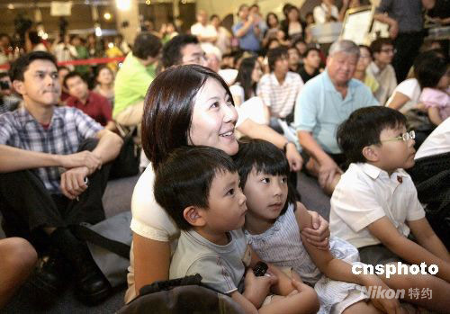 九月二十五日晚,香港市民在太空館觀看“神舟七號”升空直播。中新社發(fā) 張勤 攝