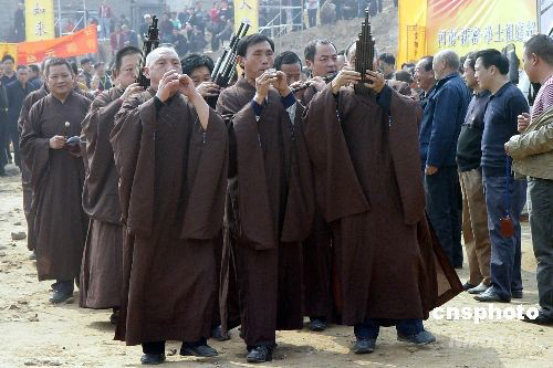 十月七日,少林寺下院--河南新密超化寺舉行大雄寶殿奠基法會(huì),僧侶居士吹奏起“超化吹歌”,使今人又能聆聽到原汁原味的佛教梵樂。吹歌大約起源于中國四千多年前的夏商時(shí)期。中新社發(fā) 李志全 攝