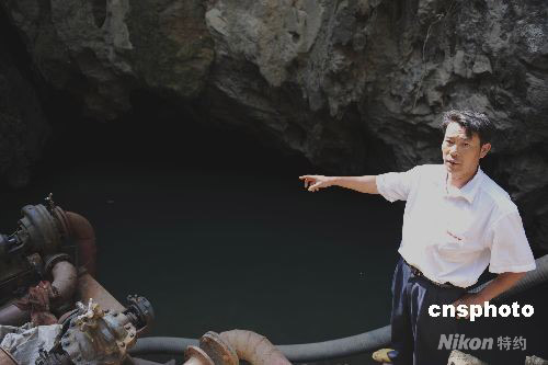 圖為受砷污染飲用水源的村民在介紹水源受污染情況。中新社發(fā) 蔣雪林 攝