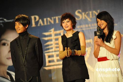 圖為《畫皮》主演陳坤、孫儷、周迅在慶功會現(xiàn)場。