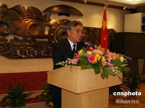 當?shù)貢r間10月8日,中國駐洛杉磯總領館舉行”紀念中美建交30周年茶話會”,中領館總領事張云在會上介紹中國改革開放30年來的巨大變化。 中新社發(fā) 盧威 攝
