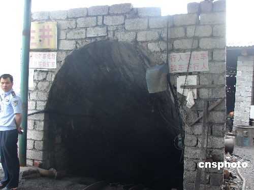 十月十日九時十五分,廣西合山煤業(yè)有限責任公司一礦井發(fā)生瓦斯爆炸事故,截至當晚七點三十分,經(jīng)搶救組多次搜救、反復核實,最終確定事故井下作業(yè)人員為八十三人,死亡九人,已經(jīng)搶救、搜救安全升井七十四人,其中受傷九人(重傷三人,輕傷六人),受傷人員正在搶救當中,目前無生命危險。圖為事發(fā)井口。中新社發(fā) 陳小勇 攝