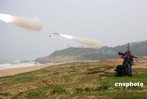 10月12日下午,海軍陸戰(zhàn)隊某旅在南海某海島組織某型防空導彈實彈射擊考核。是時,考核地域陰雨蒙蒙,風大浪高,能見度低,很難清楚辨認航模靶機的具體目標方位。該旅導彈營官兵憑借平時所練就的扎實基本功,在惡劣的天候條件下,沉著冷靜,果斷尋找最佳戰(zhàn)機,捕捉目標,先后兩次兩發(fā)齊射,將航模目標打了個凌空開花,取得了4發(fā)直接命中的優(yōu)異成績,開創(chuàng)了海軍部隊首次實射該型導彈并全部命中的先例。中新社發(fā) 李唐 攝