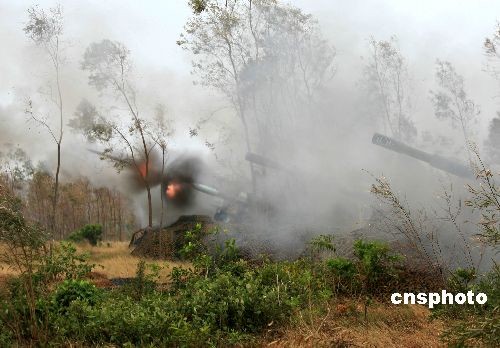 10月13日,海軍陸戰(zhàn)隊(duì)某旅在某地域組織自行榴彈炮實(shí)彈射擊考核。圖為榴彈炮發(fā)射瞬間。中新社發(fā) 李唐 攝