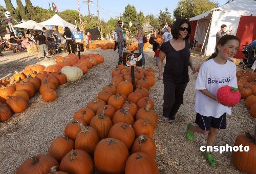 “萬圣節(jié)”將至,許多美國洛杉磯市民來到遠近聞名的貝弗利山莊“骨頭先生南瓜田”,選購自己中意的南瓜,準備自制南瓜燈,為即將到來的萬圣節(jié)營造節(jié)日氣氛。中新社發(fā) 張煒 攝