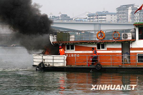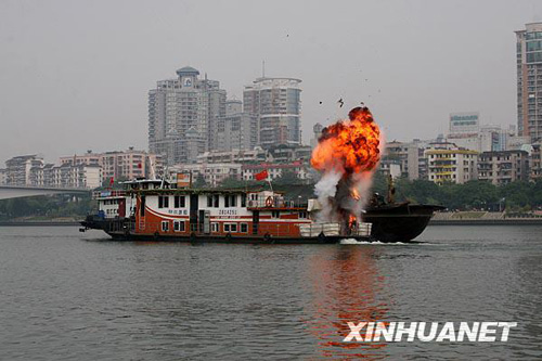 10月20日,一艘載有40名旅客的客船模擬與裝運(yùn)硫酸的液貨船發(fā)生碰撞,造成客船機(jī)艙起火爆炸。 當(dāng)日,廣西迄今最大規(guī)模內(nèi)河水上搜救演習(xí)在柳州市柳江河段舉行,演習(xí)完成了旅客疏散、船舶滅火、污染控制等課目演練,數(shù)百人、30多艘救援船舶參加。演習(xí)旨在完善水上突發(fā)事件應(yīng)急反應(yīng)聯(lián)動(dòng)機(jī)制,為廣西水上交通營造安全氛圍、提供安全保障。