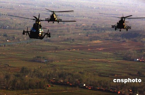10月24日,中國(guó)人民解放軍濟(jì)南軍區(qū)參加“前鋒--2008”演習(xí)部隊(duì)在訓(xùn)練基地集結(jié)完畢,裝甲、陸航部隊(duì)進(jìn)入訓(xùn)練階段。這次演習(xí)以信息化條件聯(lián)合作戰(zhàn)為背景,進(jìn)行實(shí)兵、實(shí)彈演練,將有二百余名外國(guó)軍人、留學(xué)生參觀。據(jù)悉,這是中國(guó)軍隊(duì)首次大規(guī)模對(duì)外國(guó)留學(xué)生開放軍事訓(xùn)練演習(xí)。中新社發(fā) 宋吉河 攝