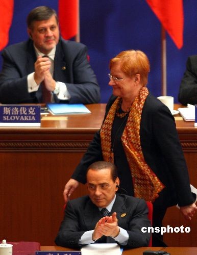 歐盟委員會主席巴羅佐(中)出席會議。中新社發(fā) 盛佳鵬 攝