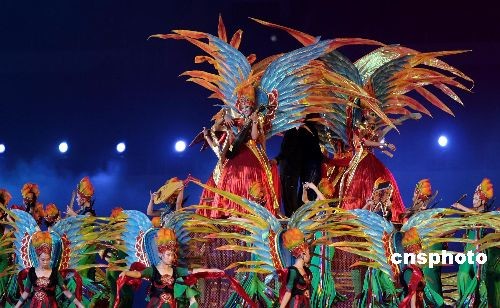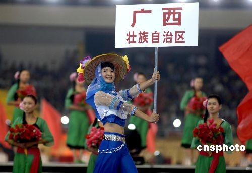 開幕式上,引導(dǎo)小姐身著極具閩南特色的鱘埔女裝帶領(lǐng)運(yùn)動(dòng)員進(jìn)場。中新社發(fā) 王東明 攝