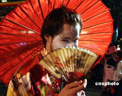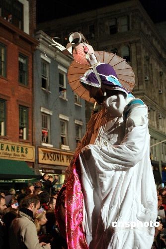 10月31日晚,第三十五屆“紐約格林威治村萬圣節(jié)游行”隆重登場,曼哈頓六大道人山人海,盡管面對金融風(fēng)暴,但紐約客依然“群魔亂舞”,極盡瘋狂。中新社發(fā) 彭偉祥 攝