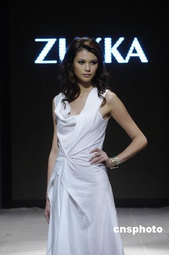 2008年10月31日,2009ZUKKA春夏時裝發(fā)布會在上海浦東鄂爾多斯國際大廈15Space創(chuàng)意園舉行。著名模特王文琴領(lǐng)銜走秀。ZUKKA整場發(fā)布會以“溫度”為主題,呼吁大家多關(guān)注我們?nèi)祟惞餐纳姝h(huán)境,關(guān)愛我們的地球。中新社發(fā) 董鴻景 攝