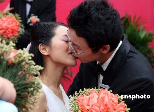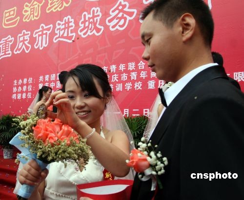 圖為新人們放飛彩蝶慶賀新婚。中新社發(fā) 郭晉嘉 攝