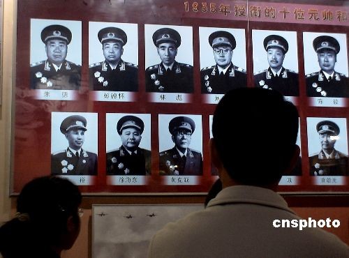 在北京中國軍事博物館舉辦的《復(fù)興之路》大型歷史展覽中,包括林彪在內(nèi)的十大元帥照片吸引參觀者的目光。中新社發(fā) 賈國榮 攝