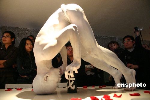 11月2日下午,馬來西亞的華裔舞者李瑞強在北京鼓樓東大街的一家酒吧為大家表演現(xiàn)代舞“人與神”。李瑞強在半露天的環(huán)境中表演個人獨舞,雖然天氣寒冷,但是他全情投入,演出忘我,使肢體動作沖破語言與文化的障礙,觸動了觀眾的心。李瑞強以為,舞蹈是一種活生生的生命體驗,是live art。這個舞蹈是為了引發(fā)觀眾對“人+神”主題的聯(lián)想。中新社發(fā) 郭海鵬 攝