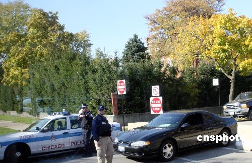 11月4日美國(guó)大選全民投票日,民主黨總統(tǒng)候選人奧巴馬位于伊利諾伊州芝加哥南部的住宅周?chē)脖4胧┦謬?yán)格。住宅周?chē)粌H有禁止通過(guò)和停車(chē)的標(biāo)志,還有警員把守。中新社發(fā) 李靜 攝