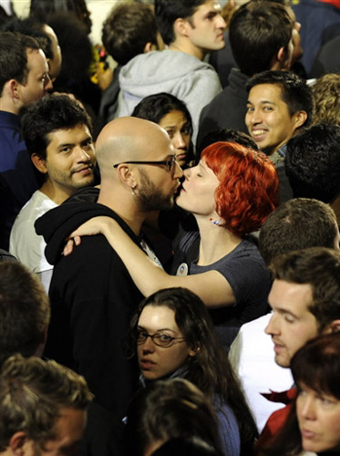 一對情侶在集會中還不忘秀一下自己的愛情。