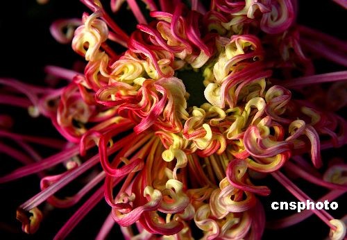 在11月上旬的河南省開封市第二十六屆菊花節(jié)上,盆盆競(jìng)相怒放,朵朵爭(zhēng)奇斗艷。 菊花花會(huì)是開封市政府主辦的融觀花賞菊和展示宋都民俗文化為一體的盛大旅游文化活動(dòng),每到金秋時(shí)節(jié),古城公園景點(diǎn)、大街小巷到處都是菊的世界,花的海洋。期間,龍亭、鐵塔、大相國(guó)寺、包公祠、禹王臺(tái)五大展區(qū)展花40余萬(wàn)盆,200多個(gè)品種,菊花造型千姿百態(tài),令人目不暇接。中新社發(fā) 宋吉河 攝