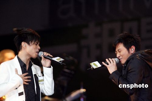 圖為張敬軒、孫耀威傾情演唱。中新社發(fā) 武仲林 攝