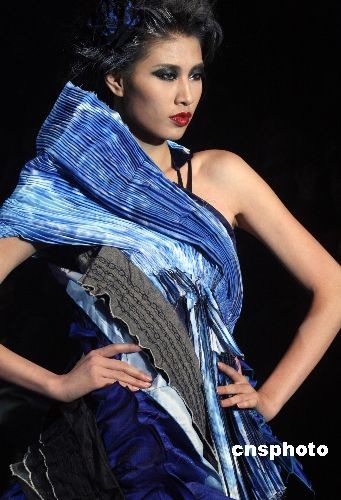 11月11日晚,在北京舉行的中國(guó)國(guó)際時(shí)裝周2009春夏系列發(fā)布上,推出了一場(chǎng)名為長(zhǎng)江的2009春夏高級(jí)時(shí)裝發(fā)布會(huì)。作者以長(zhǎng)江景象、長(zhǎng)江技藝、長(zhǎng)江情懷為創(chuàng)意主題,以時(shí)裝創(chuàng)作藝術(shù)手法表現(xiàn)中華民族豐富絢麗的文化。圖為模特展示2009春夏《長(zhǎng)江系列》高級(jí)時(shí)裝發(fā)布新款。中新社發(fā) 錢興強(qiáng) 攝