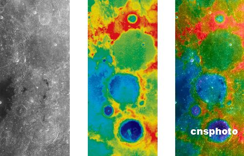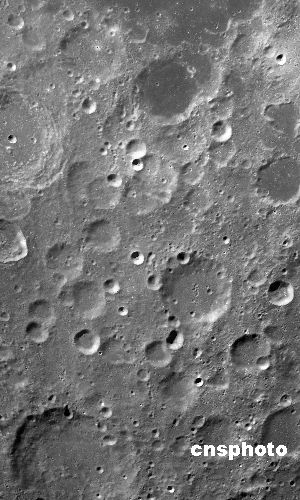 圖為2007年12月11日,中國國家航天局發(fā)布的由“嫦娥一號”衛(wèi)星11月26日獲取的6軌立體相機(jī)數(shù)據(jù)拼接而成的“嫦娥撞擊坑”。
