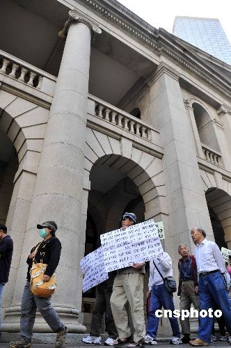 十一月十二日,香港立法會(huì)辯論是否引用權(quán)力及特權(quán)條例,傳召官員及銀行代表,調(diào)查雷曼事件。約三百名雷曼相關(guān)產(chǎn)品的投資者,早上到立法會(huì)門(mén)外請(qǐng)?jiān),表達(dá)訴求。中新社發(fā) 譚達(dá)明 攝
