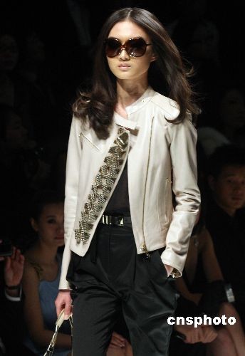 11月13日晚,意大利某著名時裝品牌在北京舉行中國的首場時裝發(fā)布會。圖為模特展示新款時裝。中新社發(fā) 錢興強(qiáng) 攝
