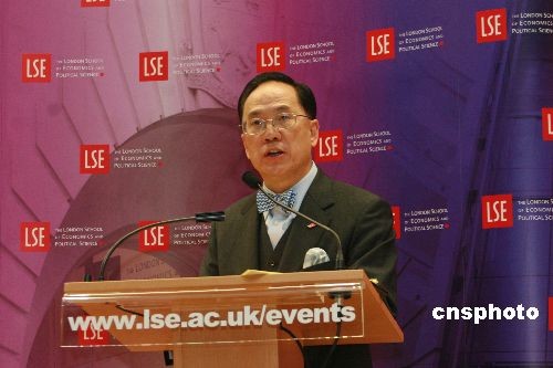 當?shù)貢r間11月19日下午,香港特區(qū)行政長官曾蔭權在倫敦政治經濟學院,向該校以及來自牛津、劍橋、帝國理工大學、倫敦大學學院等大學的香港留學生發(fā)表演講,向他們介紹香港如何應對經濟衰退和香港的發(fā)展前景,歡迎他們回港工作。