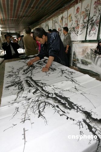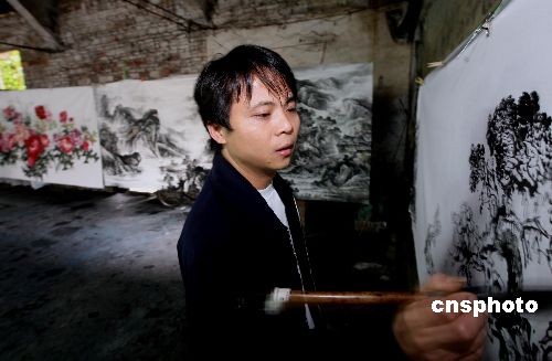 著名的奧運(yùn)之鄉(xiāng)、全國(guó)舉重之鄉(xiāng)廣西桂林五通鎮(zhèn),依靠桂林常年旺盛的游客資源,農(nóng)民繪畫產(chǎn)業(yè)蓬勃發(fā)展。全鎮(zhèn)800多農(nóng)民從事繪畫,年產(chǎn)值達(dá)8000多萬(wàn)元,成為名副其實(shí)的藝術(shù)之鄉(xiāng),全國(guó)文化(美術(shù))產(chǎn)業(yè)示范基地。中新社發(fā) 王麗南 攝