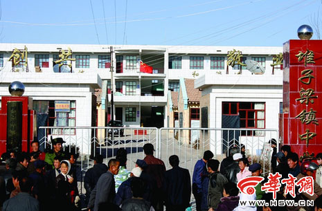 家長們在堆子梁鎮(zhèn)中學(xué)外