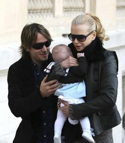 組圖:妮可扁嘴逗愛女 一家三口幸福出游