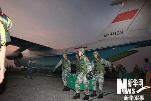 中方參訓官兵抵達印度后從運輸機卸下物資。新華軍事記者 李剛 攝