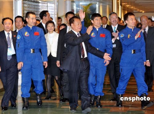十二月八日,神舟七號(hào)載人航太飛行代表團(tuán)結(jié)束訪港旅程。代表團(tuán)團(tuán)長(zhǎng)張建啟及太空人翟志剛、劉伯明和景海鵬等到香港上環(huán)信德中心乘船離港,代表團(tuán)將前往澳門繼續(xù)展開(kāi)訪問(wèn)之旅。