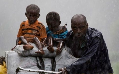 2008年11月2日,剛果民主共和國(guó)難民離開基巴提逃亡至北基伍省省會(huì)戈馬北部的村莊基布姆巴和魯加里。