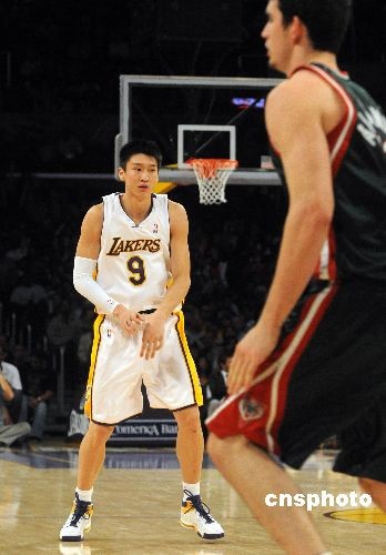 當(dāng)?shù)貢r間十二月七日晚,NBA洛杉磯湖人隊在主場以105比92輕取雄鹿隊,中國球員孫悅首度在NBA常規(guī)賽上登場。孫悅剛一上場顯得有些緊張,短短幾分鐘內(nèi)犯規(guī)次四次。中新社發(fā) 張煒 攝
