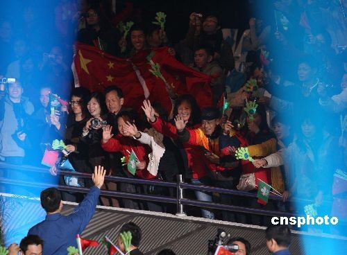 圖為翟志剛、劉伯明、景海鵬三位航天員受到澳門市民最熱烈的歡迎。中新社發(fā) 武仲林 攝